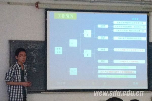 答辩会的评委由韩春岫、团委书记王栋华、团委副书记綦亮、辅导员刘楠以及现任主席团成员担任。参与竞职的同学都在竞职答辩中阐述了自己对学生组织的理解和自身的优势,提出了自己对学生会、社联今后建设的独到见解,并谈到了如何对学院学生活动进行创新和推广的问题。学术部部长钱兴洋在答辩中不仅总结了自己近两年学生工作的经历,还结合学生会的特色活动进行阐述,提出了自己的竞职优势以及对学生会的发展规划。文艺部部长孔祥菲向大家讲述了两年来自己在文艺部的收获和成长。而来自体育部的赵曦则在答辩中表现得从容成熟,他谈到了自己对主席团的定位和建设方案,内容规划全面合理。在社联的主席团竞职答辩中,竞职同学也谈到了自己的工作总结以及对于社联今后工作的展望。来自《生命之光》杂志社的三位部长在谈到杂志发展的同时也提到,今后的社联应该加强社联与其他学生组织的交流,加强人才培养,并重视运用网络媒体进行宣传。