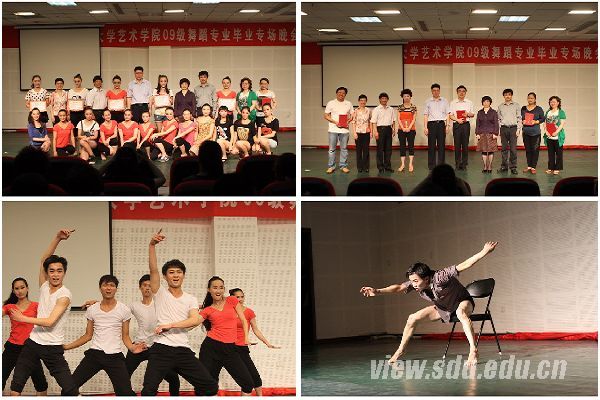 [本站讯]5月25日,艺术学院“在一起”2009级舞蹈专业毕业演出在洪家楼校区举办。本科生院副院长张树永、党委研究生工作部副部长程翠玉出席了晚会。晚会开始前,学院举行了隆重的颁奖仪式,对学院在山东省第五届高校音乐舞蹈专业师生基本功比赛中获奖的师生进行了表彰。张树勇、程翠玉、艺术学院院长李晓峰、党委书记史永志、副书记姜楠和音乐系主任李笑梅为获奖师生颁奖。