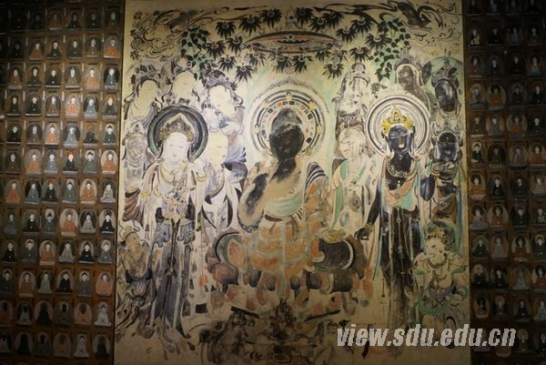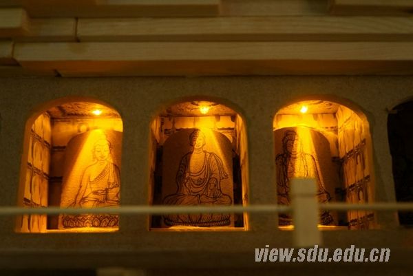 本次西部文化艺术展是2010级国画、油画和设计三个专业的同学们西部考察创作的成果展。为了让观者能够真正感受到心灵的震撼,展览从创作至展出,前后历经半年的时间,倾注了2010级美术学同学和老师的全部心血。展览分为八个部分,同学们把西行的感受以不同形式再现,展出的作品有“西行‘印’象”、“丝绸之路”以及一些佛教壁画等。国画班的师生为我们复原了新疆洞窟,是往届展览所没有的,同时也是艺术学院美术系的一个新突破。再现的新疆洞窟画面线条精美,给人以无限震撼,让每个观赏者都可以驻足细细品味其中的精髓,感受壁画之美。