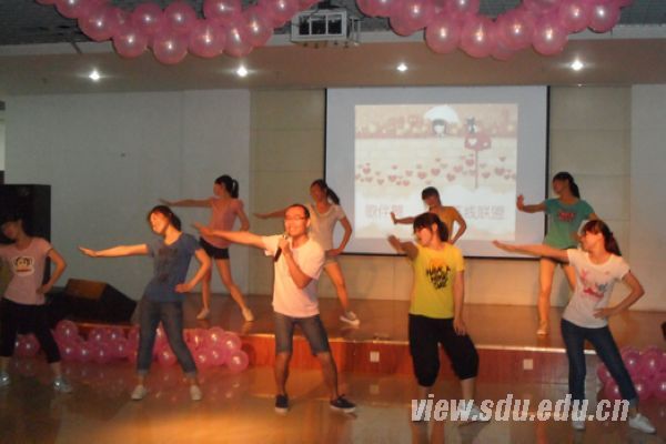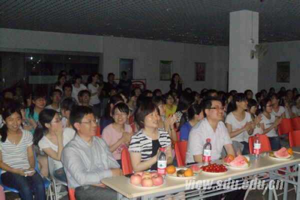 晚上,随着主持人热情洋溢的开场白,晚会拉开帷幕。李维林致开幕词,他希望同学们怀揣青春梦想,弘扬爱国热情,开拓进取,奋发有为,在学习和实践中实现学子梦、山大梦、中国梦。开场舞啦啦操《All for one》启动起全场气氛,展现出青年大学生的青春活力。《那些年,我们一起看过的动画片》通过活泼生动的表演带同学们重新体会了童年的乐趣。男声组合《同桌的你》以优美清新的旋律配上山大校园情景故事,让大家感受到一种倍加珍惜的友情。接下来的节目更是精彩连连,《舞动青春T台秀》将T台秀与《爱的华尔兹》舞蹈相结合展现了学子们帅气典雅大方的一面。女声合唱《青苹果乐园》演绎了女版小虎队的活泼可爱。话剧《铡美案》通过古装服饰与现代表演艺术结合的方式重现包公断案的故事,在笑声中引领大家走进法制的社会。诗朗诵《目送》将母亲节孝亲与感恩的氛围带到晚会。二胡独奏《齐鲁情韵》带给大家一场视听盛宴,展现了齐鲁大地的独有风采。男声独唱《最佳损友》和歌伴舞《失恋阵线联盟》high爆全场,将晚会推向高潮。晚会在小合唱《爱因为在心中》的优美歌声中结束。辅导员王永军老师和全体研究生一同观看晚会。