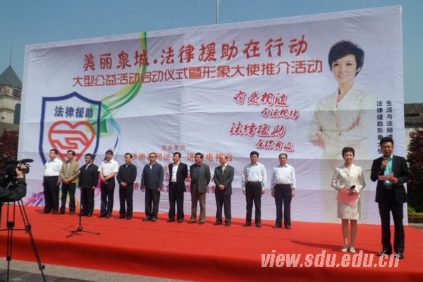 [本站讯]5月10日,“美丽泉城·法律援助在行动”大型公益活动启动仪式暨形象大使推介活动在济南洪楼广场举办。济南市人大常委会副主任许强,市政协副主席李好臣,市司法局党委书记、局长毛华铭等领导出席本次活动,本次活动由济南市司法局、济南电视台主办,由济南市法律援助中心、济南电台生活与法频道协办,济南多家律师事务所和法律援助中心参加此次活动。山东大学法律援助中心参加此次活动。