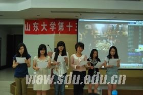 本次大赛特邀潘玫杏老师做评委,参赛宿舍各尽所能,各显所长。6427、4413等宿舍通过鲜明活泼的PPT展现丰富多彩的宿舍文化,给现场带来欢声笑语的同时,更为在场的观众展示了一场意蕴丰厚的文化视听盛宴。5221、5222等宿舍青春洋溢的集体舞蹈使得观众眼前一亮,引爆全场的高潮。情景剧和相声节目各具特色,分别从酸甜交织的宿舍生活与宿舍文化给舍员成长的收获入手,以新颖的形式描摹了一副多姿多彩的宿舍生活画卷。5309宿舍带来立意别致、妙趣横生的三句半,6423黄格伊等同学表演的《甄玩传》在电视剧《甄嬛传》的基础上,以其高超的演技刻画了全新的华妃、甄嬛、浣碧等人物,再加上台词经典搞笑,调侃导员之处笑点多多,赢得大家阵阵掌声。 比赛选手准备的视频均制作精美,内容丰富,重点突出了姐妹情谊;朗诵者口齿清晰,感情真挚,感动了在场的所有人。11级四个宿舍都采用了歌曲表现青春激情。其中7308宿舍歌曲串烧《渡情》等也加入了情景表演,可谓给大家又带来了一场视觉盛宴。