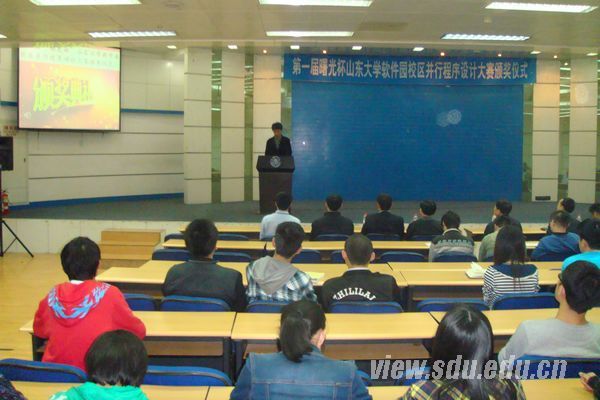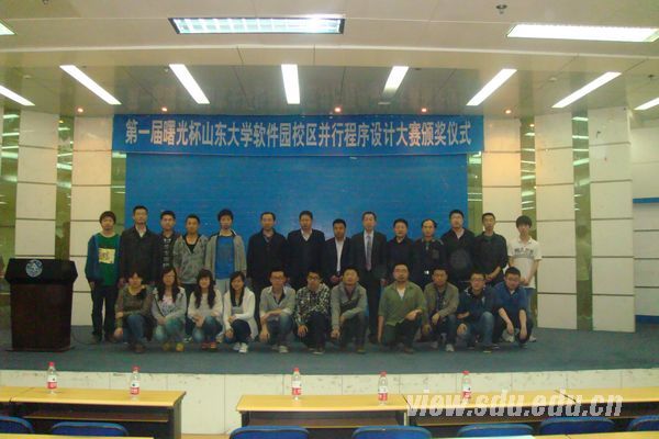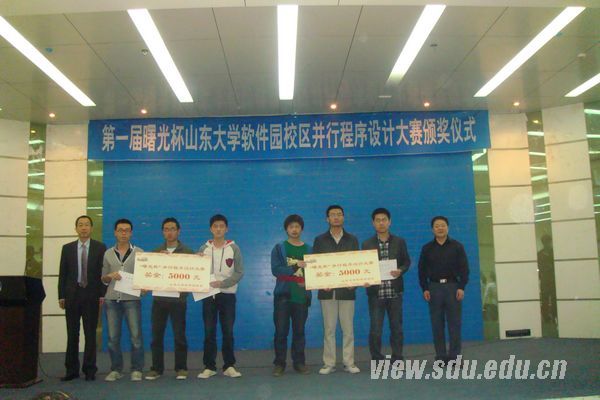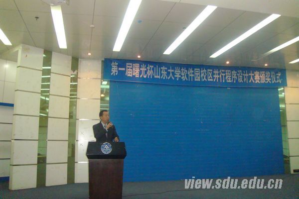 [本站讯]5月9日,第一届“曙光杯”并行程序设计大赛颁奖仪式在软件园校区举行。曙光信息产业股份有限公司山东平台总经理韩永师、教育行业经理陈夫通作为企业嘉宾,计算机与软件学院党委书记潘国栋、副书记董兴,计算机学院副院长杨承磊作为学院教师嘉宾参加了此次活动。