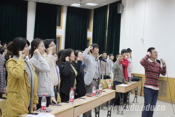 接下来,获得山东大学十佳团支部的2010级英政团支部和2011级日二团支部通过视频、照片和具体数据的方式,从团支部概况、支部工作机制、团日活动展示和支部展望四个方面进行团支部成果展示,让在场同学走进了他们工作的点点滴滴。在了解其特有的团支部特色之后,一位2012年校长奖学金的获得者——李秀秀从生活、学习、科研、工作、实践五个方面向同学们进行经验介绍,同学们在感叹和羡慕的同时,更多的是在优秀学姐留下的“脚踏实地、志存高远”中得到了激励。