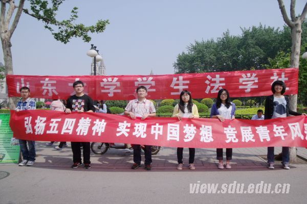 [本站讯]5月4日,法学社一行人来到花园路洪家楼广场前进行普法宣传。正值新法实施之时,本次普法活动与以往有所不同,意义重大。