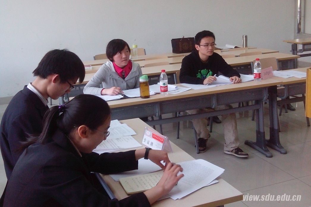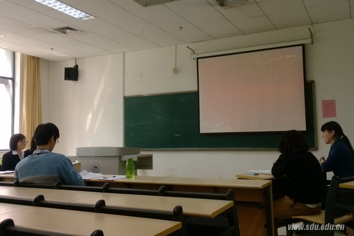[本站讯]4月27日,中英文模拟法庭大赛的初赛在山东大学洪家楼校区法新楼成功举办。此次活动由山东大学学生法学社主办,得到了校团委、院学生会的大力支持。活动旨在模拟真实法庭,激发同学学习法律知识,提高法律涵养的情。