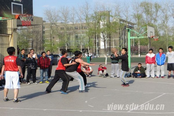 [本站讯]4月9日,由政治学与公共管理学院对阵外国语学院的男子篮球三对三联赛在洪家楼校区举行。