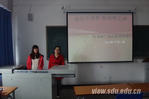 [本站讯]4月2日下午,2011级日语2班团支部于洪家楼6号楼举行 “亲近中国梦,畅谈春之声”之两会视角主题班会。
