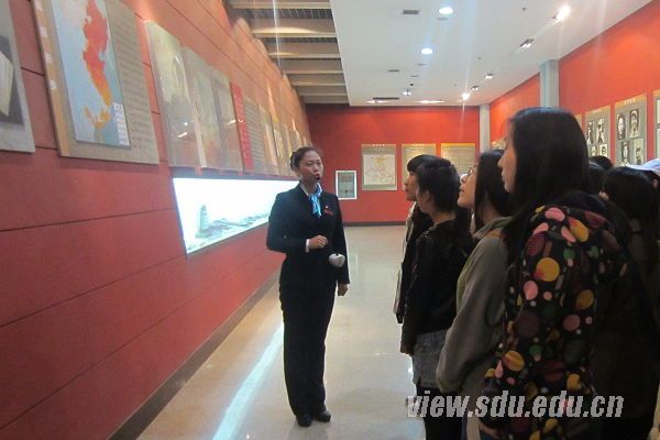 随后,同学们来到济南革命战役纪念馆,解说员向同学们讲述了济南战役,介绍了战时武器装备、逼真的战斗油画浮雕等,引领同学们回顾历史长河。同学们瞻仰烈士遗像,聆听烈士事迹,仿佛又回到那个枪林弹雨,硝烟弥漫弥漫的战场。工作人员还组织同学们观看了模拟济南战役的全景画。纪念馆凭借现代科技手段,真实再现波澜壮阔的济南战役画卷,把同学们再度带进那个硝烟弥漫的战争年代。大家在激扬顿挫的旋律中感受到革命先烈的英勇无畏,每个人都屏气凝神认真观看,用无言的心境寄托对烈士们的敬意。最后,楼管会会长李振飞对本次活动做出扼要总结,来自医学院、口腔学院、药学院的诸多志愿者参与了此次活动。