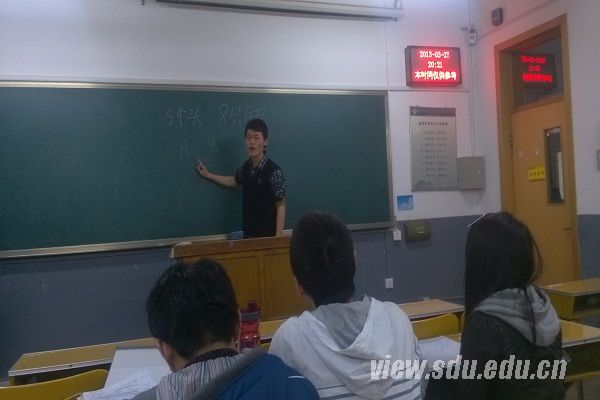 面试开始前,刘志汉首先向大家介绍了本次面试的具体流程,分为试讲和针对性提问两个环节,主要考察大家的授课能力和综合素质。随后,已通过第一轮面试的同学们依次走上讲台,讲授自己准备的课程内容,他们的授课风格或诙谐幽默,或和蔼可亲,或严谨条理;授课内容涵盖了语、数、外等诸多科目,每个人都很好地表现出了自己优秀的一面。试讲过程中,评委们饰演小学生的角色,配合队员回答提问,却也像小孩子一样“制造”课堂冲突,考验队员处理问题的能力。评委随后根据试讲时的具体表现对他们提出了意见和建议,又提问了一些针对性问题,更深入地了解队员的素质及其对支教活动的理解,以保证选拔出最优秀的队员。