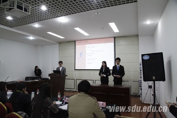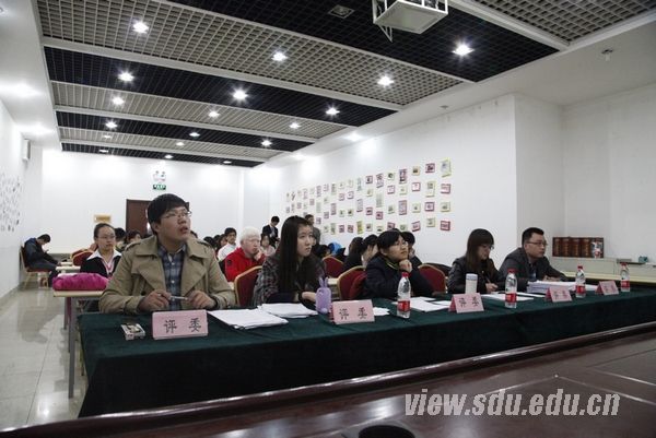 本次社团评选,在经过社团提交的参评材料审批后,全校80余个校级社团、200余个院级社团中,共有37个校级社团、37个院级社团通过初审,进入社团评选答辩会。答辩会由20名来自山东大学学生社团联合会第十届、第十一届主席团的成员担任评委,分四个会场同时进行。答辩会开始后,身着正装的答辩代表们按抽签顺序依次上台作工作汇报。答辩人通过PPT展示,就社团组织机构设置、运作模式、品牌活动、社团优势、前景展望等方面,结合社团特色,用精彩的语言、丰富的多媒体资料,展示出2012-2013学年本社团的优秀成果。其中,有的社团把自己社团的意识理念归结为一种社团文化,这也是本次活动的一大亮点。而且,在演讲形式上,本次答辩也颇有创新之处。校级社团中,相声协会的负责人通过相声“说学逗唱”四种形式介绍了该协会举办的大型演出、所获荣誉,以及在济南各大媒体的知名度;书画协会会长则用对联的形式介绍了本协会的品牌活动以及今后的展望,让评委和观众们在翰墨丹青中体会到书画协会的独特魅力。与之相比,各院级社团的表现也不逊色。管理学院的“西部阳光”社团,创意性地采取两人介绍、一人展示文稿的新形式。演讲的两人交替发言,诗一样的语言配合着多媒体的悦耳音效,产生了别样的效果,令人耳目一新。5分钟的社团工作汇报完毕,评委们根据社团演讲内容,就社团机构设置、财务使用状况、品牌活动建设、活动宣传等进行细致提问,协会会长结合社团自身状况从容应对,整个答辩过程紧张而有序。本次活动也得到了校团委的大力支持,校团委社团工作部部长张熙分别到四个会场参评了协会答辩,并根据答辩内容,对社团工作提出指导。