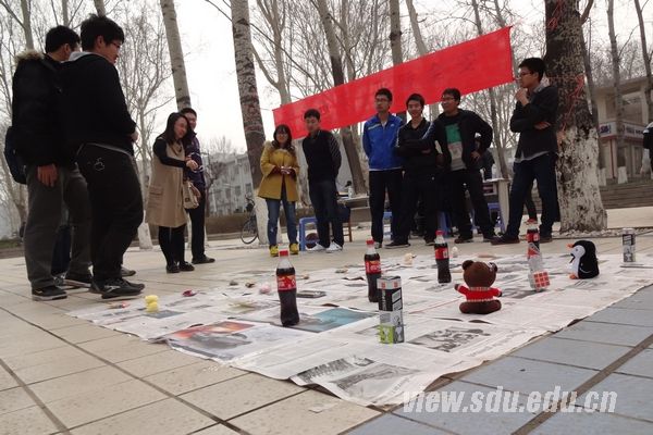 食堂东南门一片热闹,引来各个年龄阶段的人参与。参加活动的同学获得了不等的套圈机会,同时也赢得了不同的礼品。其中一位同学赢得了大奖——绒毛玩具熊,引起围观人们的欢呼以及羡慕之情。另外,有不少同学在快失去希望的时候套中了可乐,得到一份意外惊喜。活动进行一半后,化学院2012级辅导员张洁也来参加活动,为此次活动增加了不少活跃氛围。