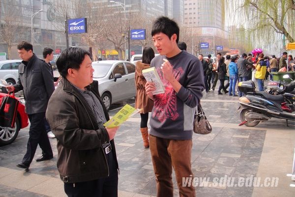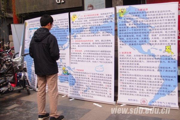 [本站讯]3月16日,电气工程学院科普立项小组走进泉城路,正式拉开了电气工程学院传播活动的序幕。本次科普传播活动鉴于公众对于电力系统的微薄认知,围绕“节能减排”的大主题,就电力基础知识、智能电网以及安全用电相关信息进行宣传,以达到传播科学知识,提高公众科学素养的目标。