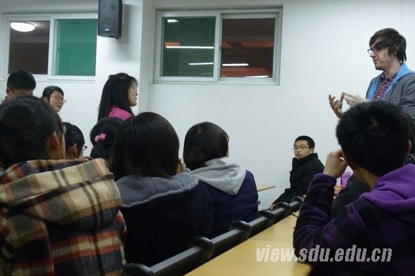 晚7时30分,活动正式开始。首先,来自英国的外教Mark向大家简单介绍了自己的家乡以及留学中国的一些经历。随后,活动进入了有趣的英文电影配音环节,现场气氛十分活跃。主持人谢警首先为《海上钢琴师》配了一段作为示范。接下来,Mark和许多同学都先后为电影《超级大坏蛋》和《肖申克的救赎》做了配音。虽然电影语速较快,个别同学有些紧张,影响了发挥,但大多数同学都能够凭借较强的英语口语实力进行出色的表演。接下来的环节是听歌唱曲,《Take Me to Your Heart 》、《My Heart Will Go On》和《My Love》等经典英文歌曲引起了很多人的共鸣,台下观众情不自禁地和台上歌手一起哼唱,现场气氛达到了高潮。在随后的游戏环节中,同学们玩得十分开心,很快就到了最后同学们与外教的互动环节。同学们与Mark交流了对英国和中国的文化和生活方式等方面的差异,Mark也为同学们提供了些提高英语口语能力的方法,希望同学们能多用英语和他对话。