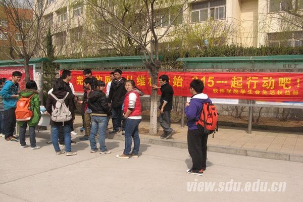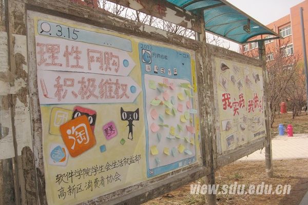 [本站讯]3月15日,随着网购的逐渐流行,网购维权也越来越受公众重视。借着“三一五”的契机,软件学院学生会生活权益部举行了网购维权的宣传活动。济南市高新区工商局消保科科长邓永超,济南市高新区工商局消费者协会主任王宝元应邀参与活动。