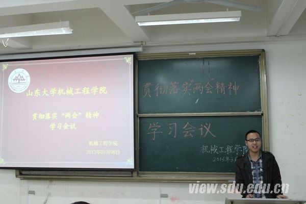 [本站讯]3月5至10日,机械工程学院本科2009级各班级及党支部、2010级党支部、2011级和2012级各班团支部分别在千佛山校区、兴隆山校区组织集中观看了全国政协会议、全国人大开幕式、总理政府工作报告等,并举行主题交流会展开讨论,探讨观后感。 各年级党支部和团支部分别以支部大集体、宿舍小集体、教室大讨论等多种形式,组织观看两会直播,如机械本科2009级党支部组织学生在教室集中观看并讨论,2012级各班组织学生在宿舍观看,2010级党支部组织学习讨论。在讨论座谈会上,同学们对国家的政治建设、经济发展、民生、科技、文化等多方面都给予了极大关注。大家纷纷联系实际发表自己的观点和想法,体现了坚定的政治方向和高昂的爱国热情。 2009级车辆班团支书宋谦谈到,温家宝总理的政府工作报告既对过去五年取得的辉煌成就进行了回顾,又指出了存在的困难和问题,并对2013年的政府工作作了安排和部署。作为大学生,我们应该从自身做起,从身边的每一件小事做起,在日常学习和生活中贯彻落实党的十八大精神,共同实现我们的“中国梦”。 2009级宣传委员张竣琪认为,温家宝总理在报告中指出,国家财政性教育经费支出五年累计7.79万亿元,年均增长21.58%,2012年占国内生产总值比例达4%。近年来,国家教育资源重点向农村、边远、民族、贫困地区倾斜,在推进教育公平方面取得了明显进步,成果令人欣喜。 2012级机电班党员王一凡表示,“全国人民代表大会”和“中国人民政治协商会议”这两个庄重的名词和这两件严肃的政治事件,似乎离我们普通人很遥远,可是随着中国开放程度的增加,民主自由度的提升,越来越多的普通人也能接触到和参与到这一不平凡的历史事件中。不仅我们的代表阶层分布更加趋近合理,神秘的两会也在记者的报道中走近了普通群众,让群众见证了一个个提案的诞生,见证了“最美孕妇”带子参会的感动、初次当选人大代表的成龙大哥拍案的勇气、山西省长李小鹏幽默的处事风格、国家在两会上做出的节约举动……一切的一切都让我们切实感受到,我们是国家的主人,我们正在参与和影响着历史的进程,不论是微博议案还是网上论政,我们正身处其中,着力建设一个更民主开放的国度。 2010级党支部在学习讨论中对两会提到的社会发展与生态环境保护的关系进行了探讨。党员们首先针对最近一段时间北方出现的雾霾天气分享了自己的看法,一致认为社会发展不能以牺牲环境为代价,解决环境问题不但要依靠先进的技术,更要在生产制造的时候注重绿色生产。 3月9日,2012级机电班组织了“交通械管,机电先行”活动,通过亲身体验严峻空气质量环境中的工作情况,团支书翟鑫表示,空气质量问题是关系人民群众生命健康的大问题,经过前些日子连续雾霾天气的影响、交通协管的亲身经历,同学们感受到,修订环境质量标准势在必行。活动的最后,同学们纷纷表示,要认真贯彻落实“两会“精神,用实际行动为国家发展贡献自己的力量。 机械学院本科各年级学生对“两会”的关注,表现出了高度的政治敏锐性,以及对党和祖国美好明天的期待。同学们表示,今后会继续关注两会进展以及国家的发展,努力学习专业知识,提高自身综合素质,争取早日入党,为国家做贡献。