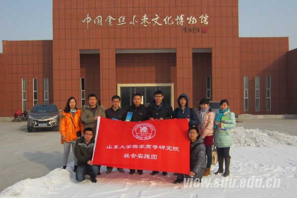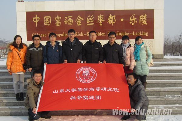 [本站讯]日前,为践行党的十八大精神,提高研究生社会实践能力,让广大研究生深入接触社会,儒学高等研究院响应校党委研究生工作部要求,由院研究生会联手经济研究院研究生负责组建了由4名优秀博士、6名优秀硕士组成的“践行十八大精神,迎新春走基层”社会实践团,深入有“中国金丝小枣之乡”、“中国富硒金丝枣都”、“中国调味品产业城”、“中国体育产业城”、“中国汽车零部件产业城”称号的德州乐陵考察调研,学习宣传党的十八大精神。