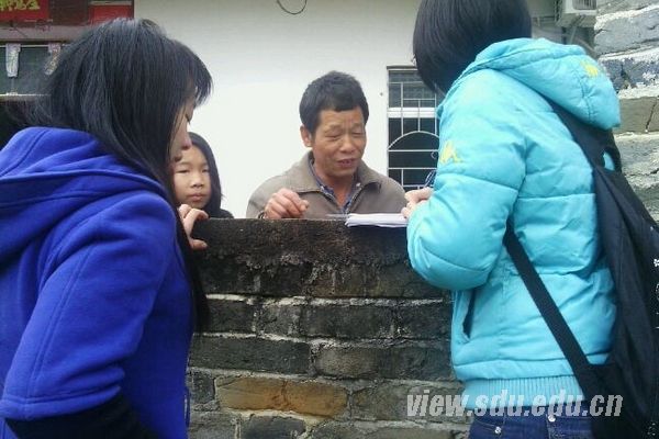 上午,队员们来到同心镇管辖下的凤阁村,挨家挨户地开始问卷调查活动。村民们热情诚恳地配合队员们的采访调查。中午,队员们在村小卖部,与村民们进行面对面的访谈。下午,队员们来到附近上水村,继续进行问卷调查工作。一位村干部接受了队员们的采访,他向大家介绍了新农合在上水村的实行情况,以及他本人对新农合筹资问题的看法,使队员们受益匪浅。 通过实地调查,同学们了解到新农合政策得到群众们的欢迎和肯定,但是在一些细节落实、监督管理等具体问题上仍有待完善之处。