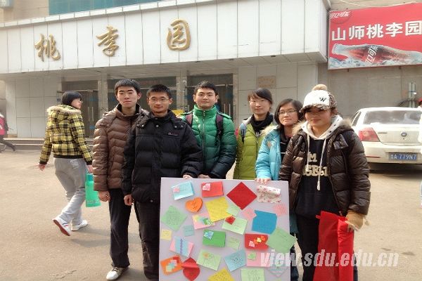 上午,“仁医起航”社会实践团队成员步行进入山师大,由于山师放假较晚,此时期末考试还未完全结束,校园里依旧有不少同学。考虑到午饭时间快到了,在食堂附近同学比较集中,大家带着祝福板来到山师红烛园餐厅与桃李园餐厅前面的空地上,按照分工开始“瓷娃娃”宣传活动。队员们热情地向过往的山师同学介绍本次活动,并了解他们对成骨不全症的认知情况,给不了解“瓷娃娃”的同学耐心讲解该种疾病的临床表现以及诊治现状,并送给他们一些队员们制作的“关爱瓷娃娃——让我们的爱不再脆弱”系列宣传资料,希望他们能让身边的亲戚、朋友也了解、关注“瓷娃娃”。广大山师同学踊跃参与本次活动,他们认真地听队员的讲解,而且真诚地为患者们写下了好多祝福卡片并亲手粘贴到祝福板上,表达对成骨不全症患者们的祝福。祝福板慢慢地被色彩斑斓、各式各样的祝福卡片覆盖满了,“仁医起航”团队在山师的宣传活动也接近尾声。