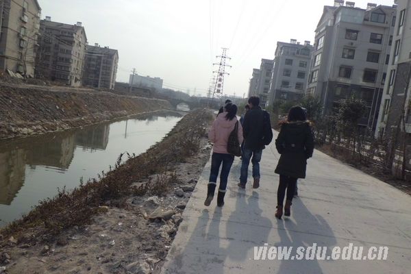 20日上午9时,实践团队首先来到动物园附近的小清河段,此段的小清河是位于济南市小清河市区段的中上游。由于小清河是济南市排水的唯一渠道,小清河水质的好坏能够反映出济南市水资源整治的成果。仔细观察了小清河河水情况后,队员们并没有得出直观明确的结论。队员们认真记录河段内水质的情况,并且进行了多个角度的拍摄。之后在队长易维维的组织下,队员们就发现的问题进行了深入的讨论。对于一些不能解决的问题,队长也做了记录,以便咨询指导老师和相关的单位。紧接着第二天上午8时,甘泉社会实践团队来到济南市兴济河进行水质调研。队员们首先乘车来到兴济河源头——市中区兴隆山。该河大概有10米宽,河中只有少许水,但水上零散地漂浮着垃圾袋等生活垃圾。队员们沿着河道往下游走来到了兴济河天桥区段。该段河床里长满了水草,淤泥高低不平地堆积在河道上。据当地一位居民介绍,三个月前曾有河道治理单位组织过清淤,但由于附近正在施工,清淤只能停止,等到施工完成后再开始,因而初期的清淤效果并不明显。接下来队员们来到兴济河槐荫段。河流蜿蜒穿过小区,河床由水泥铺设,杂草和垃圾较少,河道两岸载满树木,环境绿化比较好。对河道进行了细致的观察后,团队来到槐荫区内一街道办事处采访了相关工作人员。他们介绍说,兴济河是一条季节性河流,平时河道内几乎没有水,沿岸有少量的生活污水向河内排放,导致河流污染。近日,市政部门已经开始了对河道的治理。