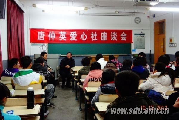 [本站讯]12月10日晚,山东大学唐仲英爱心社师生座谈会在中心校区举行。此次座谈会主要议题为探讨山大唐仲英爱心社的建设与发展。