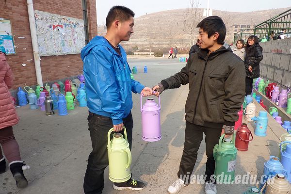 此次活动以“献礼十八大,志愿我先行”为主题,志愿服务活动形式多种多样。上午,12级历史团支部成员提前来到兴隆山水房展开了志愿服务活动。团支部成员首先对水龙头等设施进行了安全检查,在存在安全隐患的水龙头上贴上了话语温馨提示标签;随后,他们又拿来扫帚、簸箕等工具将之前暖瓶炸裂的碎片清扫干净;团支部成员还对前来打水的同学进行冬季用水安全知识普及,并帮他们把打好水的暖瓶送回宿舍。