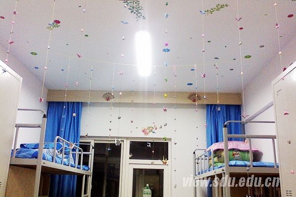 比赛由日常卫生检查和装饰评比两部分组成。各参赛寝室有的古典优雅,有的温馨别致,也有的可爱简洁,还有的清新大方。各寝室都从不同的角度、采用不同的方式展示了一个个别样的小集体。而且,每个宿舍都取了独特舍名,如宝宝居、一帘幽梦、Sweet Home等,充分体现了各个宿舍的特色。从墙壁到天花板,同学们都贴上了一些自己动手裁剪或折叠的装饰物,如星星、纸鹤、玫瑰等,主题突出,特色鲜明。在评比过程中,有些宿舍的同学还配上了精彩的讲解,让人体会到了宿舍成员之间深厚的情谊,着实给宿舍增分不少。还有的宿舍则突出了环保理念,用废纸剪了窗花,做了晴天娃娃、开关贴等等。废纸在同学们的巧手之下又有了新的用途,更给评比增添了不少精彩。