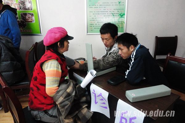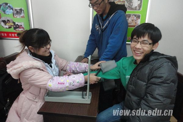 为了尽量在服务过程中减少失误,活动前,各成员一一检验所携带的器材并分配好任务。义诊开始后,成员们邀请到达现场的社区居民测量血压,现场气氛火热中带着温情。活动中,各会员微笑着服务每位接受义诊的人,并且在测量后耐心讲解了测量结果和今后需要的注意事项。此外,为了使接受诊断的人群更好地培养健康的生活习惯,会员们向每位到来的社区居民发放了健康小卡片,还在每张小卡片的背面写上了有针对性的健康小建议。期间,一位70岁的退休老人听说有大学生开展的免费义诊,立即上前要求帮助测量,大爷说现在年纪大了,很关注自己的健康状况可是去诊所测血压又不方便,很感谢成员们能提供这样的机会。一位阿姨被测出血压偏高,很担心,会长黄立群立即向她讲解了相关知识,消除了她的恐惧,还在询问了她的饮食及生活习惯后提出了针对性的建议。