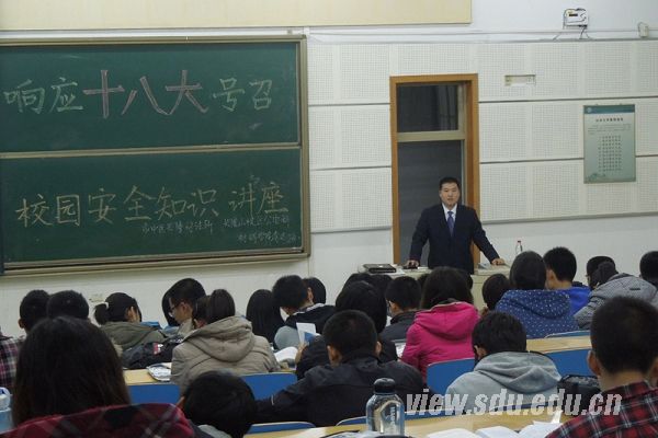 [本站讯]11月21日,为响应十八大号召,增强学生安全防范意识,材料科学与工程学院在兴隆山校区举办校园安全知识讲座,济南市市中区兴隆司法所所长苏巍主讲。