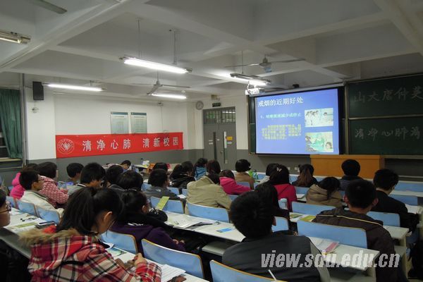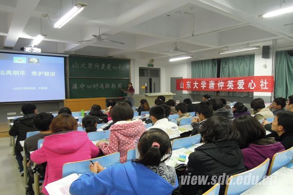 [本站讯]为增强无烟校园意识,增加同学们的健康知识,山东大学唐仲英爱心社将开展“清净心肺 清新校园”系列活动。近日,唐仲英爱心社在中心校区组织举办了“远离烟草 维护健康”知识讲座,校医院宫艳慧老师主讲,共有来自各校区的50余名同学参加。