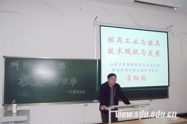 讲座中,栾贻国表示,模具技术被称为“百业之母”,在欧美等工业发达国家被称为“点铁成金”的“磁力工业”。栾贻国就模具工业与模具技术的现状与发展向同学们阐述了现代模具、现代模具工业、现代模具中心的特点,高新技术在模具企业中得到广泛应用、中国模具工业的发展与工业发达国家的差距以及模具技术的发展趋势等问题,并介绍了国内模具行业比较发达的五个省及国内比较知名的模具企业等。他还讲到,现代中国模具行业已有了很大的发展,其进出口总值已超过了中国的机械制造业,但与发达国家相比仍有很大的差距,需要有更多的高端人才来促进其发展。随后,栾贻国就山东大学材料科学与工程学院塑性成形与模具研究所的情况向同学们作了讲述,并详细介绍了近几年材料学院模具专业学生的考研、保研及就业情况。