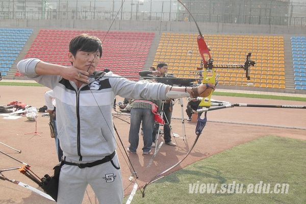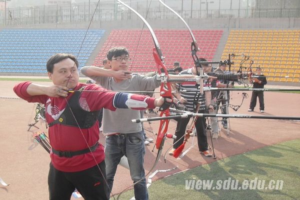 [本站讯]10月28日,材料学院开展“传统文化与现代竞技相结合的走进校园”活动,邀请济南专业射箭的弓客俱乐部,在兴隆山校区举行射箭表演赛。此次活动由材料学院社团联合会承办。前国家体育局射箭部部长,现中国射箭协会副主席,国家级裁判员徐开发参与活动。