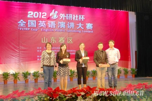 [本站讯]10月21日,“外研社杯”全国英语演讲大赛山东省决赛在山东师范大学校本部举行。经过三轮激烈的角逐,山东大学外语学院沈燕雯同学凭借出色的发挥获得特等奖,并将和其他两位选手一同参加12月在北京举行的全国英语演讲大赛决赛。