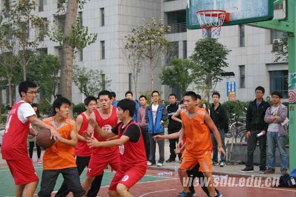 [本站讯]10月19日,山东大学第九届研究生男子篮球赛1/8决赛在中心校区举行。本场比赛由电气学院对阵经济学院,最终,电气学院以34:30险胜经济学院。