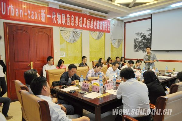 与会专家分别来自山东大学、济南市客运出租办公室、山东交通学院、山东警察学院、山东省标准化研究院、济南市公交总公司、中维世纪科技有限公司、深圳赛格车圣、山东省鲁商一卡通公司、北京计价器公司、青岛计价器公司和济南市智能导航科技有限公司。山东大学信息学院邢建平教授、王德强副教授,控制学院陈桂友教授,物理学院孟令国博士参加会议。研讨会上,济南市客运管理中心办公室主任崔冰总结了urban-taxi信息系统建设的已有成果,同时指出了目前存在的一些问题;邢建平分析了urban-taxi新一代出租车车联网标准化建设的必要性。与会代表纷纷提出了对标准化建设过程的意见和建议。