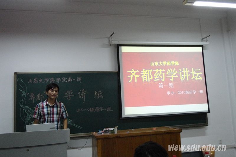 [本站讯]9月14日,药学院在趵突泉校区举办第一期本科生“齐都”讲坛,这是山东大学第一个本科生论坛。副院长邵伟,院党委副书记李雨嘉、展鹏参加活动。