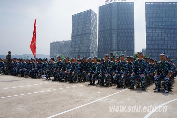 [本站讯]9月3日上午,2012级新生军训动员大会在软件园校区篮球场举行。山东大学军训团五营营长李传道,教导员贺平,副营长宋蒙涛,军训副教导员王永杰、张慧、郭春晓、李雨嘉,以及各连队的连长、指导员、副指导员、排长等出席大会。 大会在雄壮的国歌声中拉开序幕,主持人以嘹亮的嗓音介绍了与会嘉宾,每一位嘉宾都以一个标准的军礼给学员们上了军训第一堂课,赢得了学员们的阵阵掌声。贺平在发言中从政治角度向学员们阐述了军训的重要性,并鼓励学员们在军训中锻炼自己,磨练意志。李传道希望学员们增强国防观念,珍惜军训机会,提高自我服从意识,精神饱满、斗志昂扬,为党的十八大献礼。 大会上,二十一连连长杨瀚琛下挑战书,鼓舞二十一连学员们在军训中认真训练,努力让自己成长地更加茁壮。二十二连代表毅然接下应战书,豪迈地问二十二连学员有没有信心在训练场上战胜二十一连。二十二连学员们皆起立吼出“有!有!有!”,表明了他们的决心。接下来,二十三连代表衷心感谢了军训团成员们对军训的关心,二十四连教导员鼓励学员们要在军训中锤炼自己,使军训充实、愉快,二十五连学生代表刘畅代表学员宣誓了军训的决心与信心。军训动员大会圆满落下帷幕。