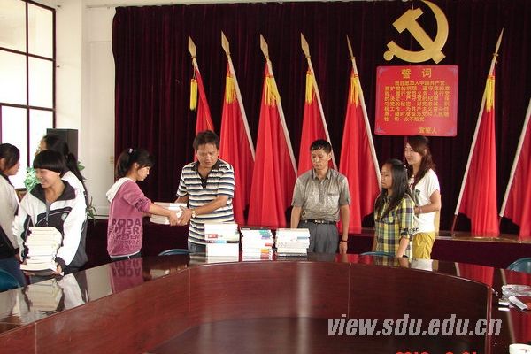 [本站讯]8月31日下午,山东大学书行西部暑期爱心募捐行所募到的爱心图书通过当当网、中国邮政全部顺利到达云南省施甸中学。中学教导处主任赵良海负责接收了该部分爱心书籍并举行了图书交接仪式。