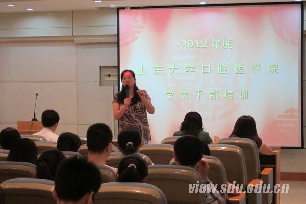 [本站讯]8月29日,口腔医学院组织举办2012年度学生干部培训会议。口腔医学院党委副书记郭春晓、团委负责人及学院辅导员为学生干部作报告,口腔医学院学生会全体成员及各班班委参加此次培训会议。