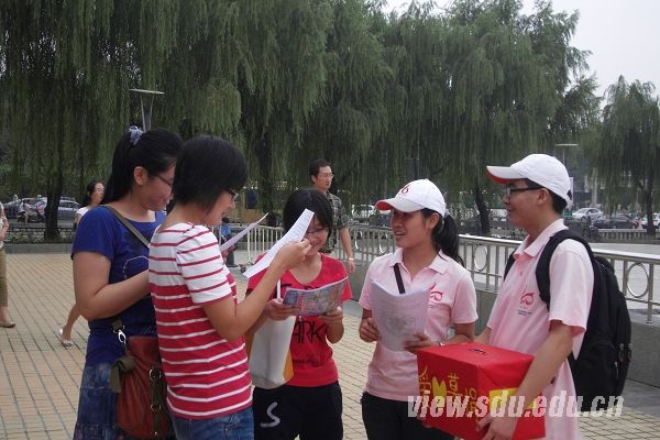 下午,队员们在济南市芙蓉街、洪楼大润发展开劝募活动。一部分队员手拿募捐箱,一部分同学拿着宣传稿向来往路人介绍爱心活动,另一部分人从旁拍照录视频。一开始活动进行得并不顺利,虽然芙蓉街人潮众多,但是来往人群多为匆忙购物的,队员们搭上了海报,但是宣传效果并不明显,在芙蓉街仅仅募到了一元钱。队员们有些灰心丧气,随后队长及时调整战略,转战洪楼银座和大润发。到达大润发后,队员们打起精神,面带微笑,继续向来往的路人宣传。可喜的是,很多人留意到“书行西部”的活动,停下匆忙的脚步,更有热心的民众自发的向队员们问询活动情况,因此,团队在洪楼收获很多。虽然也有很多人漠视而过或是故意避开,但是队员们相互鼓励,一起克服实践中的困难。
