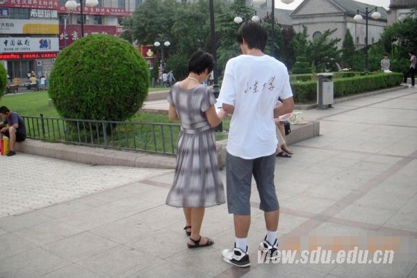 在山东师范大学,问卷发放顺利进行,很多在上双学位的同学完成了问卷调查。队员们在与他们交流的过程了解到,对于学生来说,尤其是大学生,对网络的接触很多,同时又喜欢参加体育活动,他们通过网络进行体育活动的机会也就很多,在他们看来,网络平台的建设很有必要。在发放问卷之余,队员们学校老师和其他社会人员进行了随机采访,在他们那里得到的是另一种对于网络平台建设的观点。这说明不同群体在面对网络平台时的态度是不同的。在洪家楼广场问卷发放过程中,队员们发现,这里的主要人群是社会上参加工作的上班族,由于时间和地点限制,他们很少参加体育锻炼,这也充分说明了建设体育锻炼网络平台的必要性。