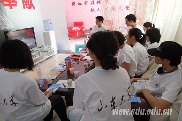 [本站讯] 7月9日上午,山东大学“南丁格尔”暑期社会实践团队的队员们来到济南市英雄山献血屋,进行捐献造血干细胞相关内容的学习和培训,为开展造血干细胞公众“知信行”调研活动奠定基础。