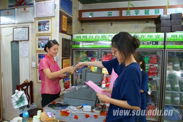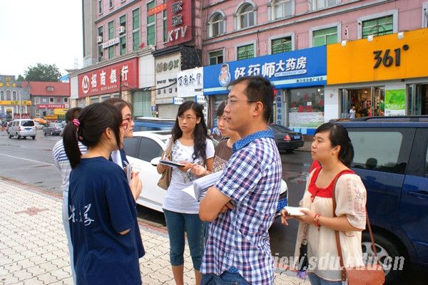 上午,队员们和历城区城管局人员在洪楼广场开展了针对花园路及其附近的店面规范化管理的宣传活动。经过城管局的部署,队员们便分头行动。第一组队员负责向店铺人员发放 “爱护泉城”和“致济南市民的一封信” 宣传单页;第二组队员负责向行人发放调查问卷,深入了解市民对夜市现状的态度与建议;第三组队员采访了城管局人员,并将近期通过调研收获的一些数据和情况反馈给城管人员,帮助其开展规范整治工作。本次活动得到了商家的好评,其中一位店家表示,有的夜市商家不在规定的时间摆摊,严重影响了各规范店铺的正常营业。另一位卖家表示,有的同行业绩不好,便选择摆夜市摊位,低价出售商品,对自己店铺的发展非常不利,希望队员将此情况反映给城管部门进行整治。此次活动还得到了山东省内媒体的高度关注,《齐鲁晚报》《济南时报》《生活日报》三大报纸媒体对本次活动进行了跟踪采访和报道。
