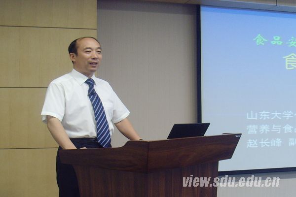 [本站讯]眼下,食品安全问题引发了社会各界关注。为进一步科学认识食品安全,7月8至9日,公共卫生学院营养与食品卫生专业赵长峰副教授在知新楼作了题为“食品安全与公众健康”的系列讲座。该讲座分八大专题,阐述了有关食品安全的历史背景、概念、现状、法律法规以及相关的科学知识内容,引导同学们从不同角度去理解和剖析食品安全问题。