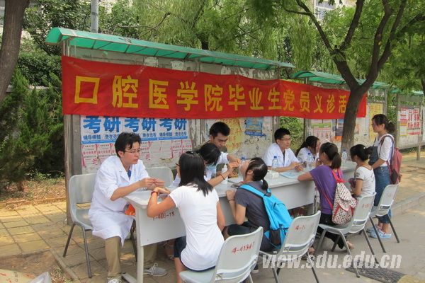 为响应山东大学在毕业生党员中开展“坚定理想信念 立志成才报国”主题教育活动的号召,口腔医学院组织毕业生党员分赴社区和各校区开展义诊活动,引导毕业生党员运用所学知识为母校师生服务,切实增强创先争优意识,塑造毕业生文明离校的良好形象。