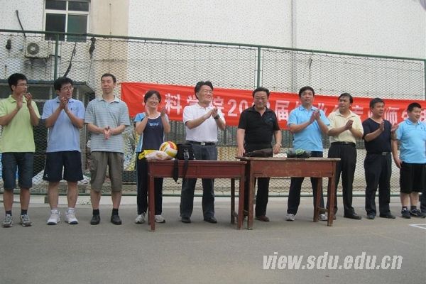 [本站讯]6月5至7日,材料学院2012届毕业生专业师生排球赛小组循环赛在千佛山校区举行。材料学院党委书记秦承涛、院长赵国群、党委副书记李赛强、副院长田学雷以及各专业老师和毕业生出席了开幕式,李赛强担任比赛裁判长。本次比赛本着共同参与、加强各专业师生之间相互交流的原则,形成了“本科——硕士——博士——教师”的组队阵容。