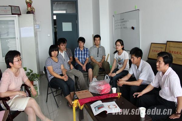 仪式上,马飞首先向在本次“绿色五月,爱行泉城”志愿活动中做出突出贡献的志愿者颁发了荣誉证书,紧接着向材料学院授予了“教书育人 服务社会”的锦旗。马飞表示,他非常感谢材料学院团委对“绿色五月,爱行泉城”活动的支持,并对志愿者们全心的付出表示高度的赞赏。之后,马飞结合自己的实践经历,谈了对大学生志愿服务的心得,分享了举办公益活动的成功经验。马飞谈到,大学生志愿活动的精神意义要远远大于经济利益,对在校大学生来说,志愿服务是“一次心灵的洗涤”,既开拓了大学生的眼界使其走进基层,了解社会现状,也让他们通过自己的努力明白自己微小的付出也能帮助他人,为社会贡献力量。交谈中,马飞了解了山东大学“井字小铺”等富有特色的公益活动,肯定了材料学院青志协举办的各种志愿服务。他还向大家介绍了基金会正在着手建立的“大学生义工”网站,希望通过对大学生志愿服务的规范化以及详细的建档备案,使志愿服务发挥更重要的作用,起到更出色的效果。材料学院团委书记王丽君、2010级辅导员李良杰、2011级辅导员张耀先及青年志愿者协会志愿者代表参加颁奖仪式。听完马飞的心得体会与经验分享,志愿者们纷纷表示,今后将继续发扬当代大学生关心社会、回报他人的精神,关爱更多需要帮助的人,将志愿服务工作坚持下去。