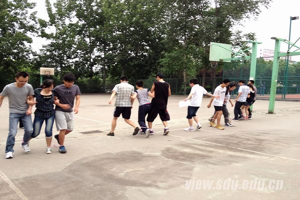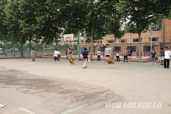 本次趣味运动会设置了7个项目:海底捞月﹑袋鼠跳接力赛﹑三人四足接力﹑摸石头过河接力赛﹑宝贝新娘﹑打保龄球和拔河。上午9时,比赛正式开始。各代表队的研究生们一改平日科研时的严谨与庄重,变得热情、活泼。瞧,袋鼠跳接力赛上,队员们穿上特地准备的麻袋竞相一蹦一蹦地穿过球场,还真像一只只袋鼠在草原上角逐,有的“袋鼠”太过心急不小心绊倒了,来了个五体投地的“袋鼠啃泥”,样子滑稽搞笑,引来了同学们的一阵阵大笑;再瞧,摸石头过河接力赛,我们的“袋鼠”兄弟姐妹们一下变身蛤蟆精一展“四足蛤蟆功”,看看他们在地上匍匐的情形你不禁要问:“亲,你们是否是出自蛤蟆派?敢问掌门人是何方神圣,竟教得出如此怪异的手舞足蹈的功夫!”过足“袋鼠”﹑“蛤蟆精”瘾,恢复人形的他们开始宝贝新娘的比赛了,小时候过家家的游戏重现在我们成人的世界里。但是,新郎们可是一点绅士风度都没有,一阵狂跑晃得新娘花枝乱颤。不过谁也没有责怪新郎的意思,倒是玩的不亦乐乎。最后,比赛在一场“群雄角逐”的拔河中落下了帷幕。参赛队员齐心协力敢于竞争﹑各队加油助威声势壮观,球场上一片欢乐的气氛。