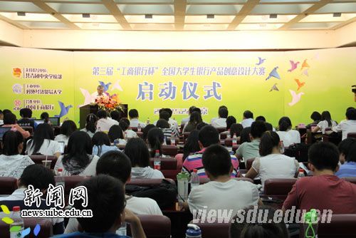 [本站讯]5月22日晚,第三届“工商银行杯”全国大学生银行产品创意设计大赛在对外经贸大学正式揭幕。共青团中央学校部副部长杜汇良、中国工商银行副行长易会满、对外经济贸易大学党委副书记杨逢华出席启动仪式。山东大学经济学院团委书记蔡清香作为参赛高校代表受邀参加大会并代表参赛高校发言。