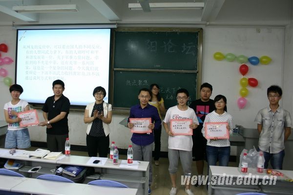 临近论坛结束,现场评委根据各团支部的表现打分,并由团委书记朱征军等为他们颁发了奖状及奖品。朱征军表示,同学们精彩的讲演辩论首先体现了大家对于时事的关注和了解;当代大学生以辩论的形式开展这样一种对时事的关注讨论,能更好地碰撞、交流彼此之间的想法、见解。同时,她希望同学们能够承担起作为一名大学生的责任,做好自身的工作。2010级辅导员陈诚、2011级辅导员王忠山、学院学生会主席团成员及2011级各班团支部参加论坛。